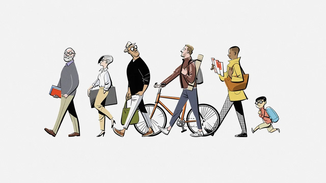 LoveFrom contracted illustrator Satoshi Hashimoto to create a series of illustrations. His vaguely mid-century cartoon style captures a kinetic energy that, as Wilson explains, juxtaposes the more formal architectural typography. “We wanted to soften [the type] with the warmth of what it feels like to walk in the store,” says Wilson. “There’s some jazz playing, the doors open, and you see the light inside the store.”