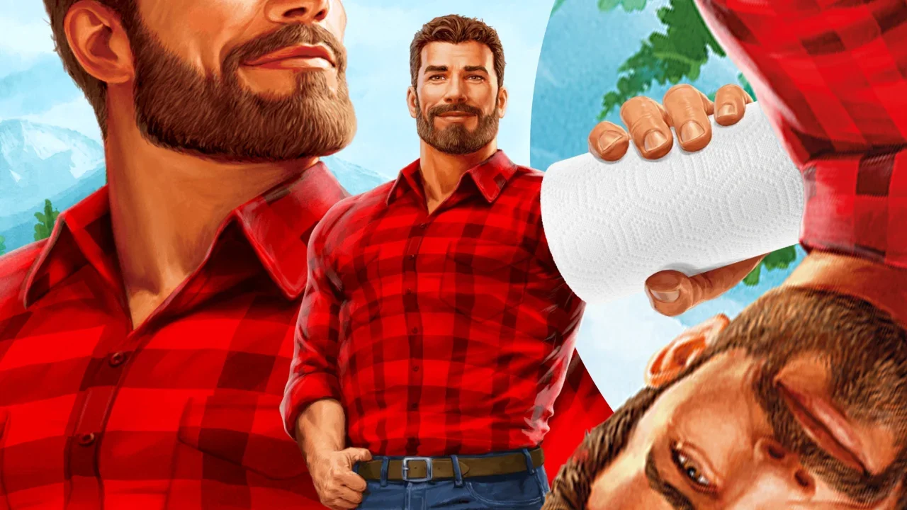 In this newest iteration, the Brawny Man appears on packaging in the form of an illustration of a handsome, hunky outdoorsy type suitable for casting on The Bachelorette wearing his signature red-and-black plaid shirt. He appears oversize in new commercials, like Brawny’s own Paul Bunyan—and he’s eager to help clean up messes, whether they happen to be in the aftermath of a 40th birthday party or at a treehouse sleepover full of superstitious tween girls.