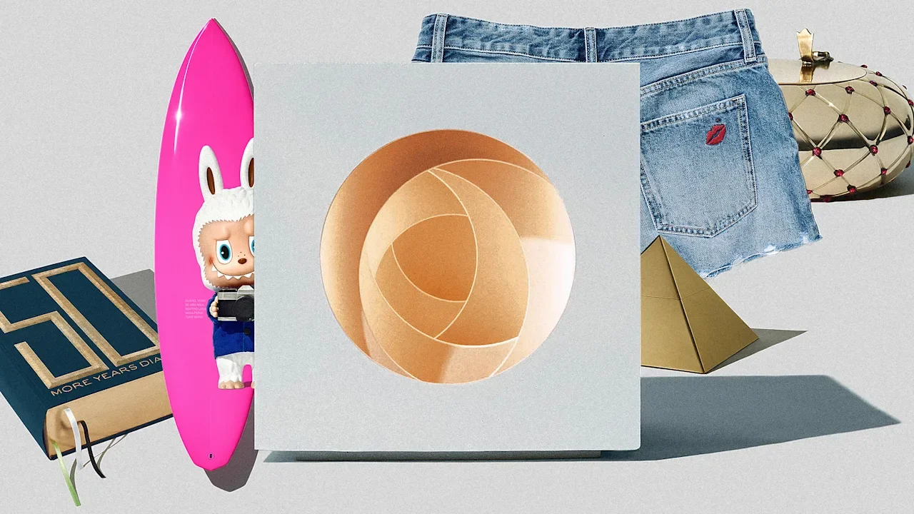 Sarah Andelman, a Paris store owner, made a fun book holder that can hang in the closet, and there’s a yellow-and-black dinnerware set from artist Sterling Ruby and a pyramid lamp from French designer Alex de Betak. Many of the pieces are meant to be conversation starters, like a Barbie pink surfboard from Balenciaga creative director Pierpaolo Piccioli and a pair of gold-colored ash trays are from Kate Moss.
