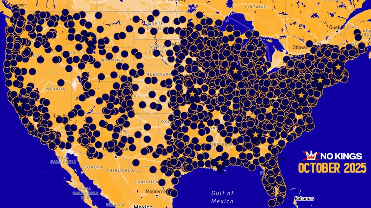 This map shows a complete list of locations for the “No Kings” events in each state scheduled nationwide. (A core principle of the protests is nonviolence, and the No Kings.org website also provides training in de-escalation.)