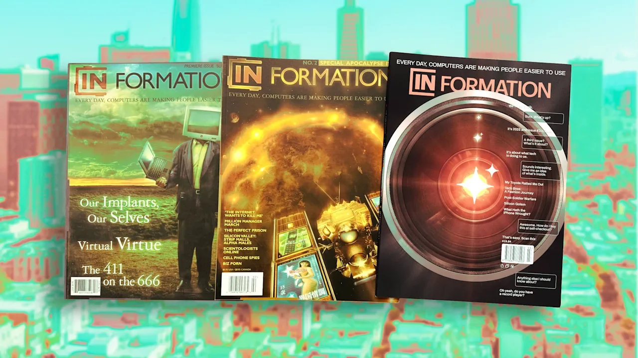 Tech has changed a lot since the 1990s. Back then, the industry was still a niche space for a “bunch of geeks making a bunch of products” they hoped would succeed. At the time, tech reporting was still relatively scant. The first two issues of In Formation turned out to be alarmingly accurate—including articles about internet cookies and tracking cellphones and browsers, and a 2000 piece joking about future cashless societies. Now, the question is, how true will this third issue ring in another 25 years. “We’re in a moment where tech is promising to change the deepest aspects of both what it means to be human and what is real,” Temkin says.