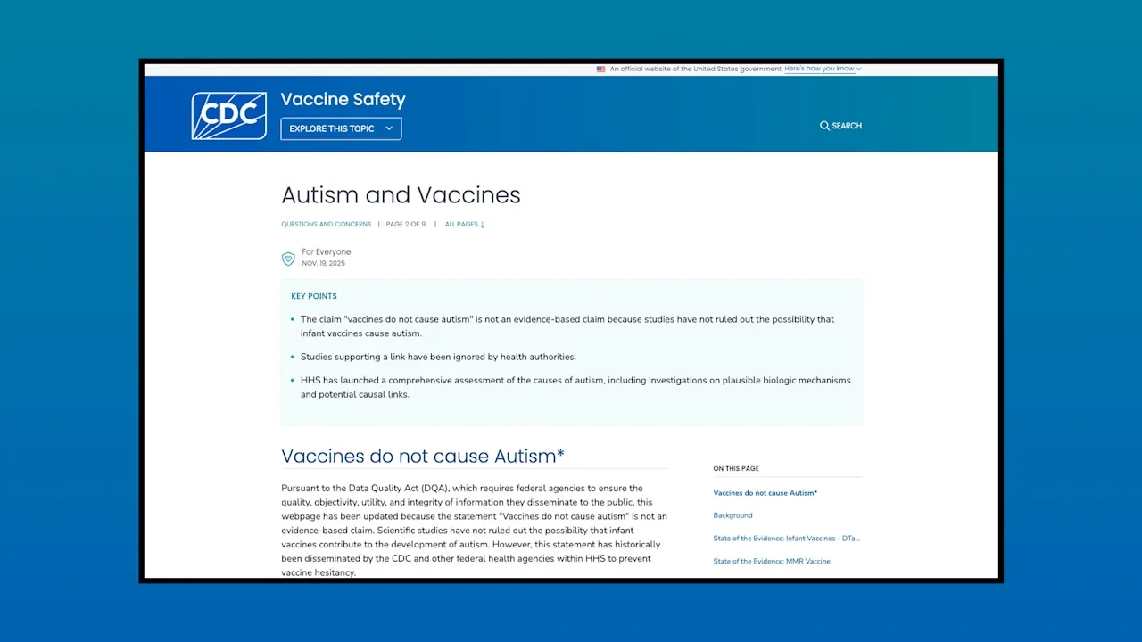 On Wednesday, November 19, the CDC published an updated web page that defies broad scientific consensus and even its own past statements. The page now alleges that “‘vaccines do not cause autism’ is not an evidence-based claim because studies have not ruled out the possibility that infant vaccines cause autism.”