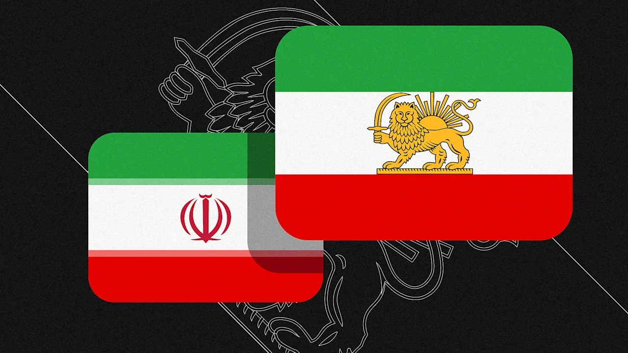 Iran’s tricolor flag features green, white, and red horizontal stripes, with the country’s national emblem displayed in its center white stripe. But some opposition groups use a historical flag that instead shows a golden lion holding a sword in front of a sun.